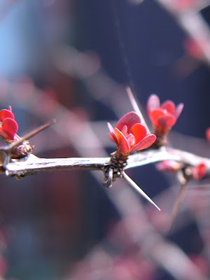 スズメ目アトリ科 メギとカワラヒワ omasa 2009年4月25日 このところ毎日庭にやって来るカワラヒワ。 今日は珍しく、“メギ”の木に止まっていました。 ん?メギの木?! それは、大変。メギの木の別名をご存知でしょうか?「コトリトマラズ」‥そうなんです。小鳥も止まれないような鋭いトゲをもっている、ということで付いた名前です。 何だか羽を膨らませて厳しい顔つきに見えるのは、気のせい? うわぁ~、痛そうですね。ていうか、実際かなり痛いです。(経験者は語る)早速明日、メギの木を移動することにしましょう。 カワラヒワの尾‥どうしても、エビフライを連想してしまいます。