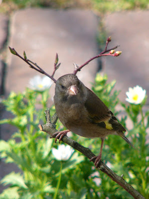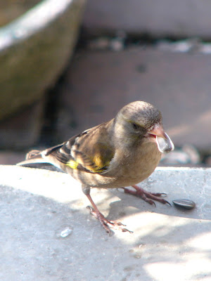 下の写真は、どれもガラス越しに撮ったカワラヒワちゃんたちです。