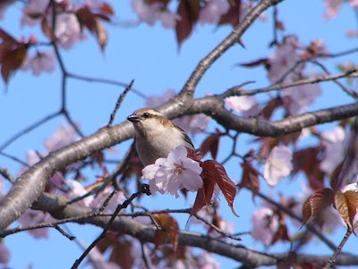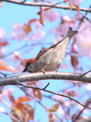 ニュウナイスズメ、サクラの花に合っています。