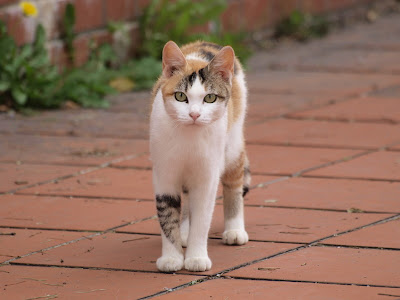 猫ちゃんは どこかの飼い猫のようで、しゃなりしゃなりと優雅に歩いていました。