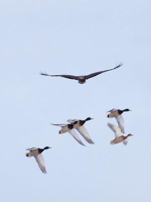 オジロが水面に浮かぶマガモを狙って急降下するたび、