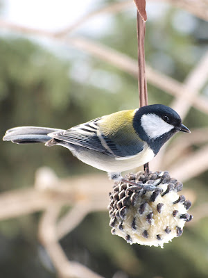 マツボックリにバードケーキを詰める、なかなかのアイディアですね・・やるね!