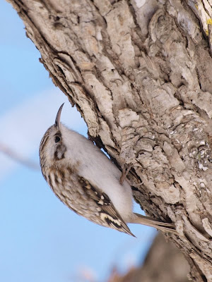私がキバシリに初めて会ったのは、屈斜路湖畔でした。もう、10年も前の4月の初め。木の幹を駆け回るかわいらしい姿にびっくり。このたびのおまささんの抜群の写真で、おおおお、こういうお姿だったのね!!と、感激してます。