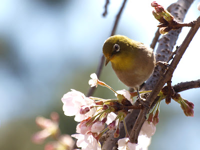 北海道では考えられないくらい簡単に、「桜とメジロ」が撮れるんですよ。