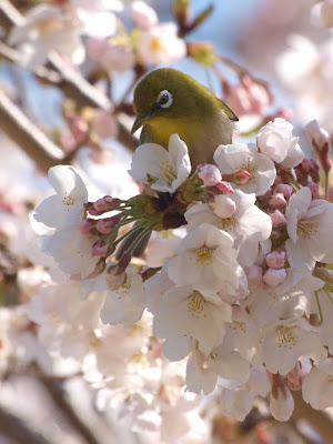 最後の写真をみていると、メジロの白いアイリングが桜の花びらの形になっていません?