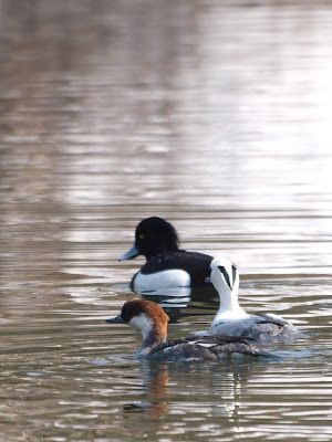 ミコアイサのツガイ、ホントにまるで子分のようです。