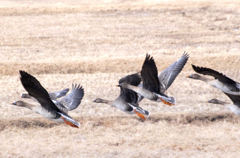 下の写真は、今年の3月中旬に沙流川付近の畑で見たヒシクイです。