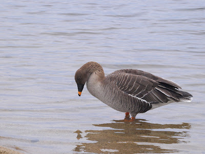 一人ぼっちのヒシクイ、水辺に佇んでいる姿がほんとに寂しそうです・・・