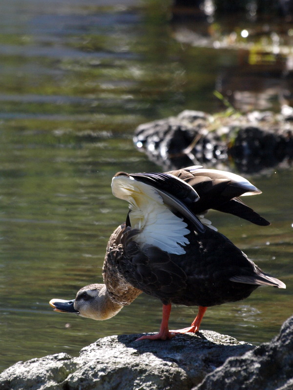 カモ目カモ科 カルガモ のび omasa 2010年10月4日 先日近くの公園で撮ったカルガモです。 足をぐ~んと伸ばし、羽を広げて気持ち良さそう ♪ ものすごい安定感 首を伸ばして、羽を上げて‥。 あぁ‥見よ。この恍惚とした表情。肩の凝り、取れましたかぁ?