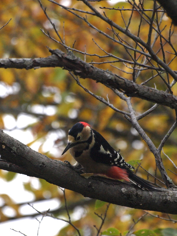 紅葉を背景にアカゲラも一層引き立って見えます。