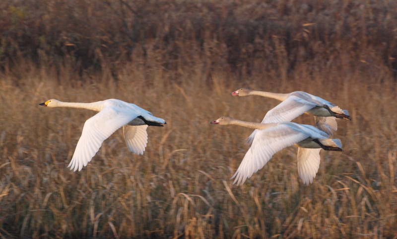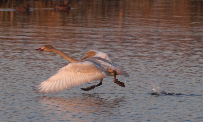 オオハクチョウの走る姿も綺麗、よく足が伸びています。