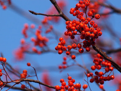 空の青に映るナナカマドの赤‥眩しいくらいに映えますね!