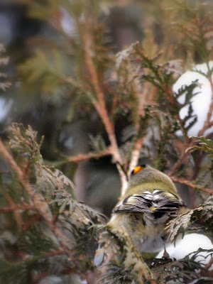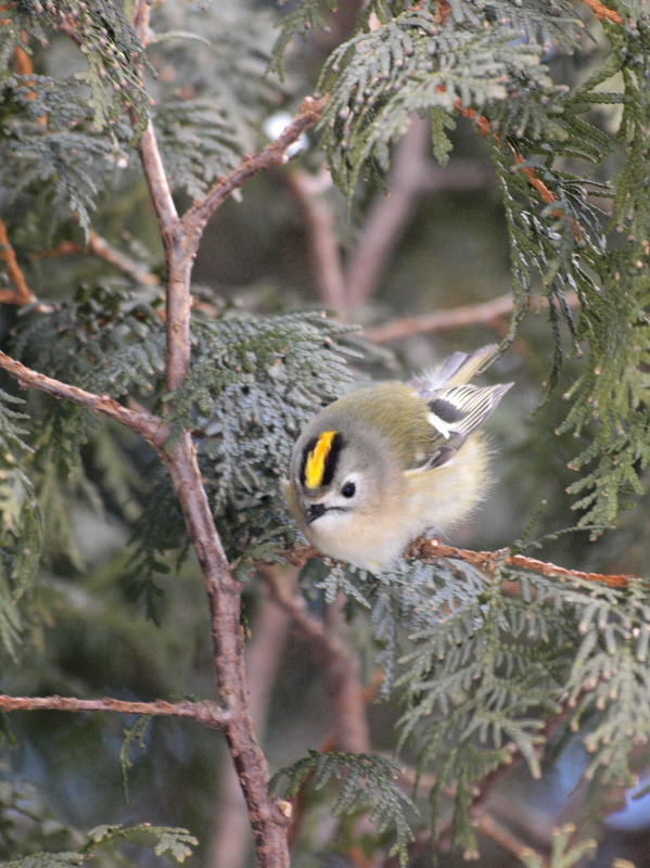 やっと正面を向いてくれたキクイタダキの黄色の帽子、カワイイですね。 いつの日か私も見てみたいです