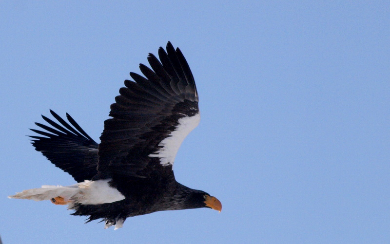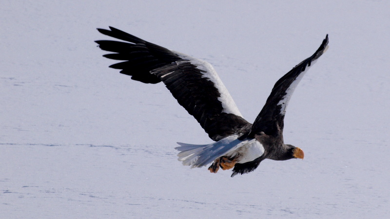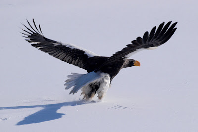 この日 真っ白な雪の上には、オオワシの影がくっきりと映っていました。