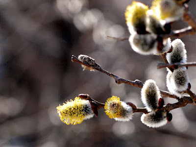 水草、福寿草、ネコヤナギの花穂・・とても綺麗ですね。