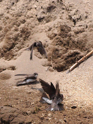 スズメ目ツバメ科 ショウドウツバメ omasa 2011年6月1日 近所の川の崖地に ショウドウツバメが巣を作っていると聞き 早速出かけて参りました ♪ 崖の壁面に掘られた 無数の巣穴に感動~ おぉ‥これは凄い! まるで「ダーウィンが来た」の世界だぁ 空を飛ぶショウドウツバメの中には 巣材をくわえたものも 少なくありませんでした ヒナの誕生が 楽しみです みんな 頑張ってね!