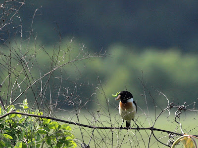 こちらのノビタキパパは 美味しそうな虫で口がいっぱいでした!