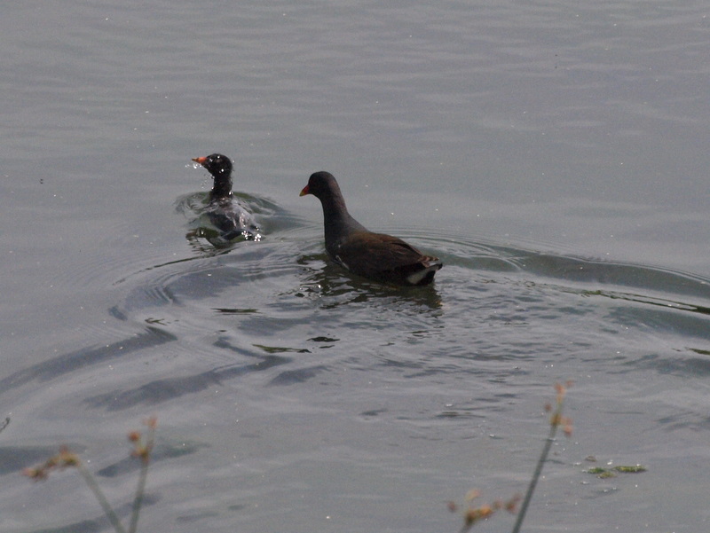 小さな調整池には、バンがいることを教えてくれた仲間の他