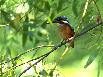 ブッポウソウ目カワセミ科 カワセミ omasa 2011年8月22日 今日は久しぶりに平岡公園へ。 最近は2度ほど空振りだったので、「どうかなぁ‥。」と思いながら出かけたのだけれど現地に着いた時にちょうどカワセミが出ていて、テンションはマックスに! 使い慣れない新しいカメラ。あ~でもない、こ~でもないと いじくりながら現れたカワセミをカメラに収める。 下の写真は、近くの木の枝にとまってくれた時のもの。背景は申し分なかったけれど、ちょっと顔が暗くなってしまった。 何度もダイブしてくれたのに、まともな写真はゼロ。う~ん、悔しい‥。 諦めずに、練習、練習!頑張るぞ~!