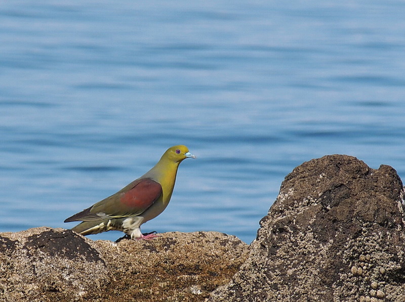 空と海の青を背景に佇むアオバト…言葉もありません。 オリンパスブルーが冴えますね。