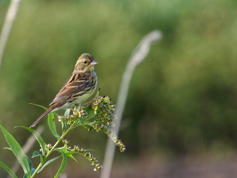 ノビタキ、幼い子を見守って、旅立ちに間に合うのでしょうか・・・・たぶん間に合うでしょうね。