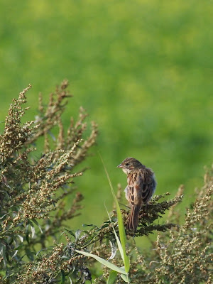 あれ、今時期にノビタキのちびっこですか?
