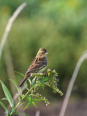 ノビタキ、幼い子を見守って、旅立ちに間に合うのでしょうか・・・・たぶん間に合うでしょうね。