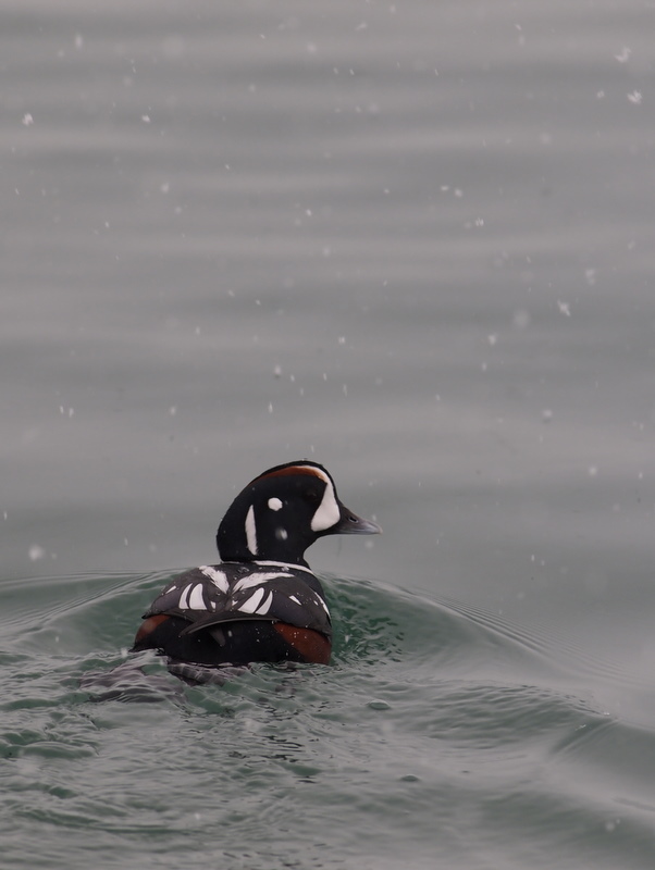 シノリガモの上にも 雪がふんわりと乗っかっていました。