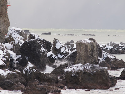 祝津の展望台に着いた頃には、ひどい吹雪でした。