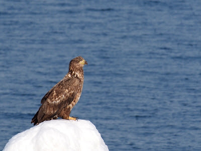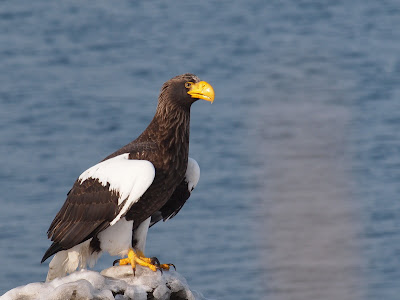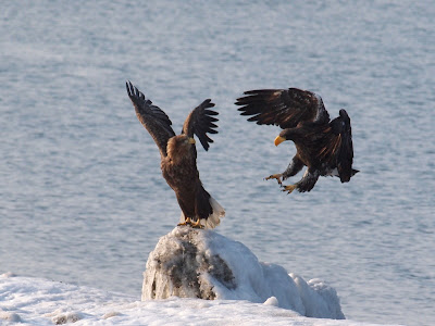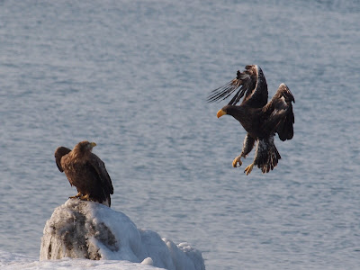 オオワシの幼鳥に追い出された、オジロワシの成鳥。