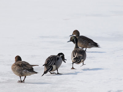 吹き出してしまいそうな、オナガガモの行進でした。