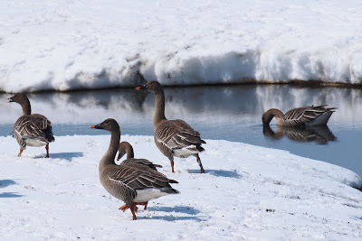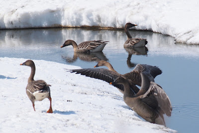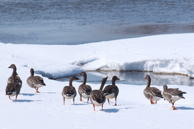 長都沼もやっと氷結から開放され、周囲の耕作地もだんだん雪が解けて餌場になりつつあるので、マガンなどの渡り鳥が多く見られるようになって来ますね。