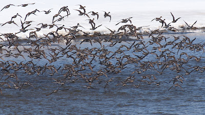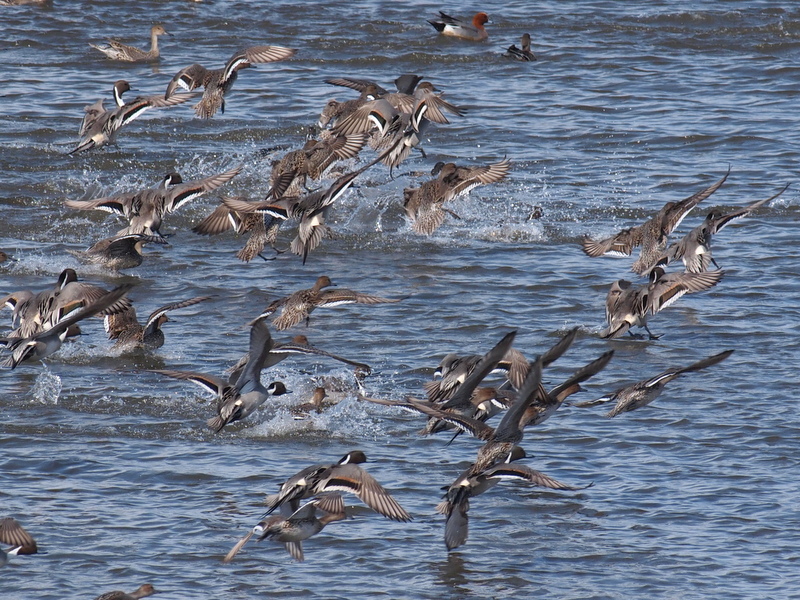 双眼鏡を覗いていたら、突然群れが飛び立ちました。