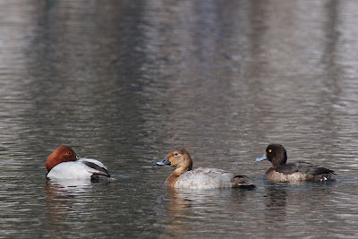 キンクロハジロはホシハジロとは近縁で、同じ水域にいることが多いそうです。