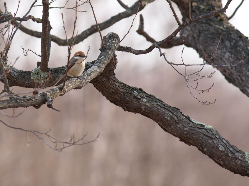 小枝がうるさいですが、背景の薄茶色がキレイでした。