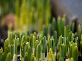 勢いよく伸びたスイセンの芽