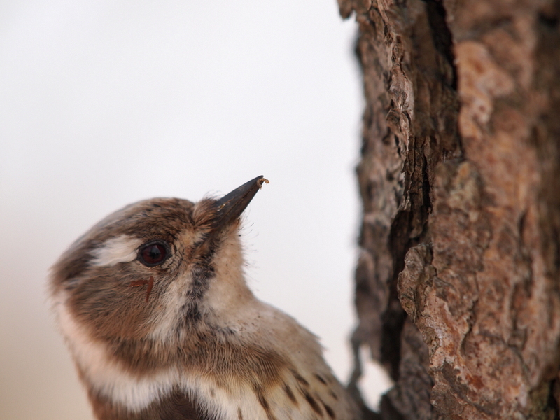 あまり警戒心のないコゲラだけれど、