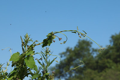 ヨモギに、何かのツルが巻きついています。
