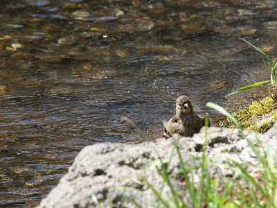 7枚目のカワラヒワが水浴びから上がってくる姿がかわいい!