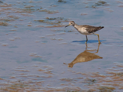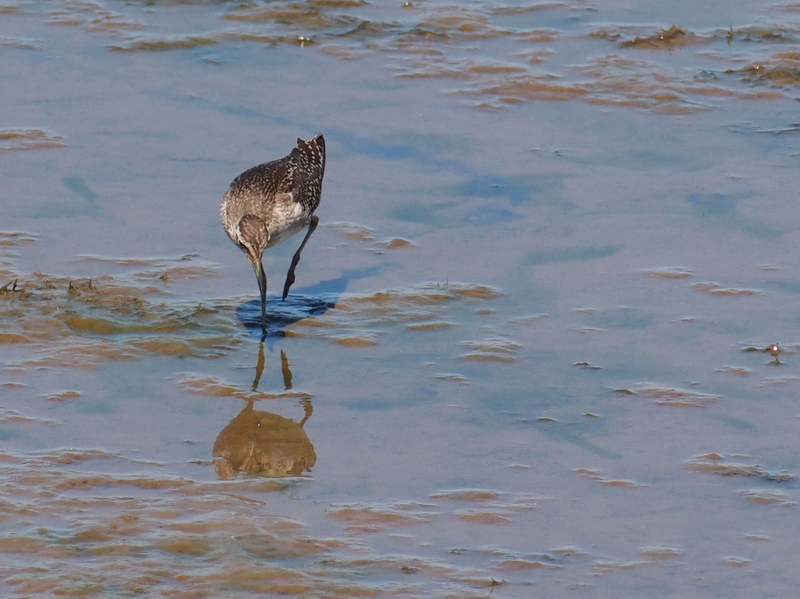 ずいぶん珍しい旅鳥だそうですが、この日は2羽が干潟を飛びかっていました。