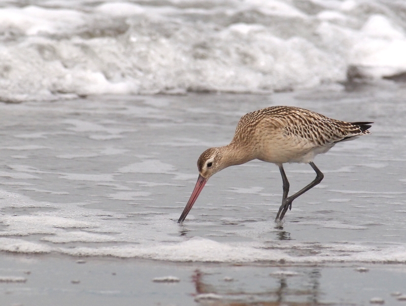 長いくちばしを砂浜に差し込んでいるのは