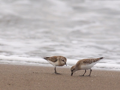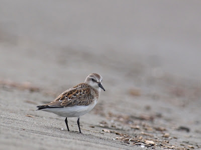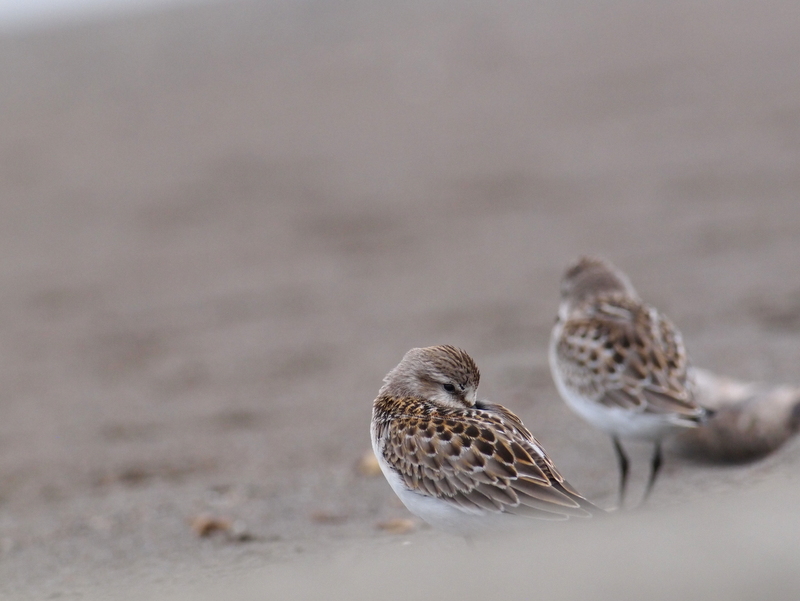 オオソリハギシギと同じ砂浜に、トウネンの群れがいました。