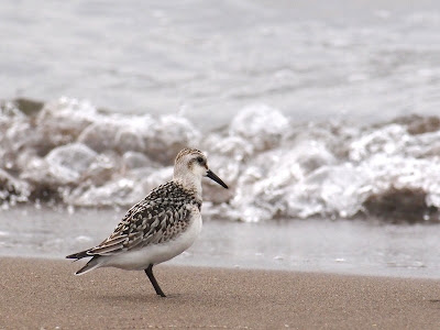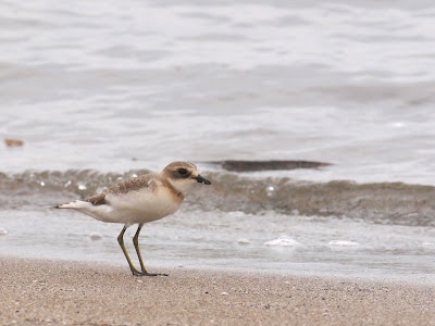 ミユビシギに混じって、1羽のメダイチドリがいるのを見つけました。
