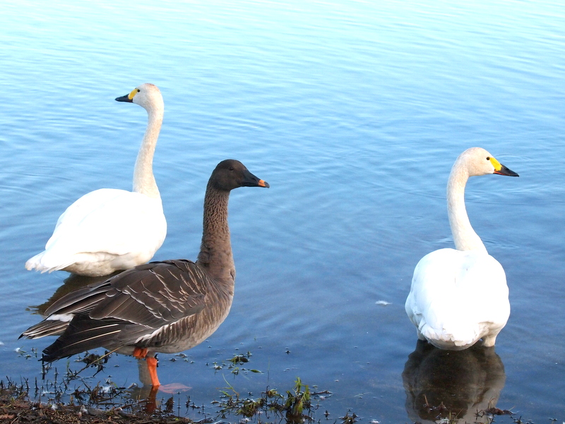 それに、コハクチョウ数羽に残留組のマガン1羽。