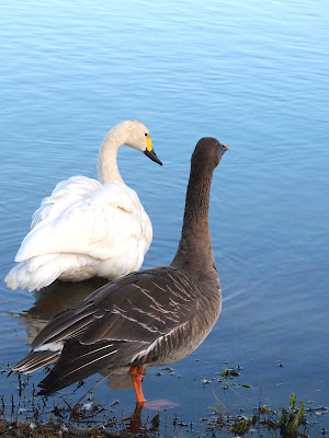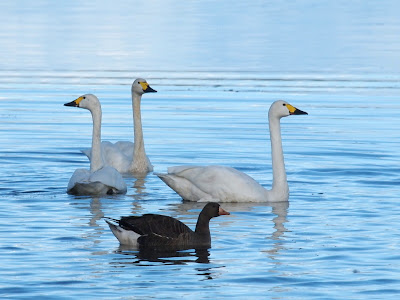 それに、コハクチョウ数羽に残留組のマガン1羽。