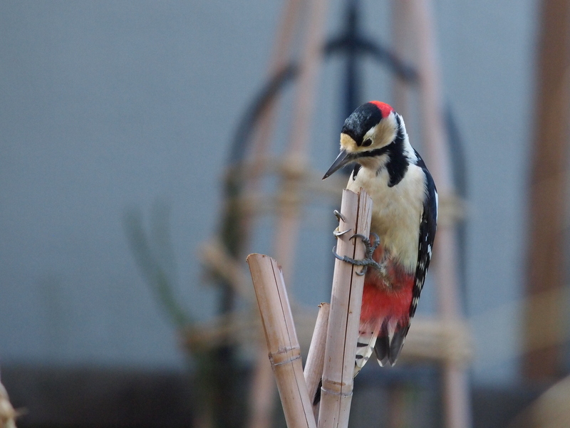 毎年冬囲いの竹をチェックしにやって来る、アカゲラ。