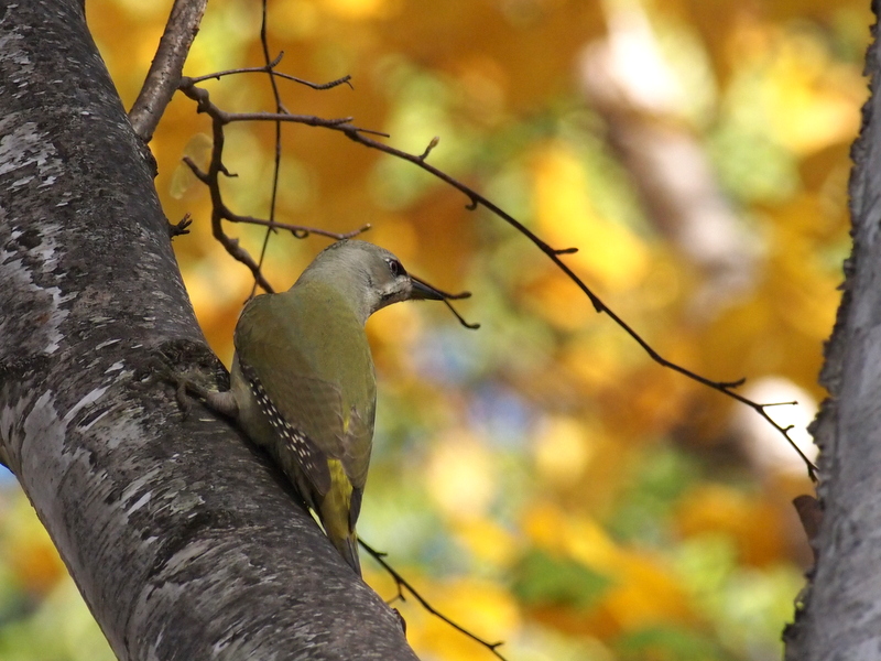 紅葉ではないですが、コゲラの赤もしっかり出てますね。