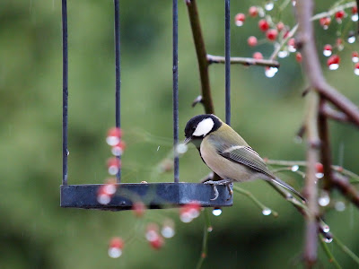 バードフィーダーを道路沿いのノイバラに吊るして、よかったな‥。