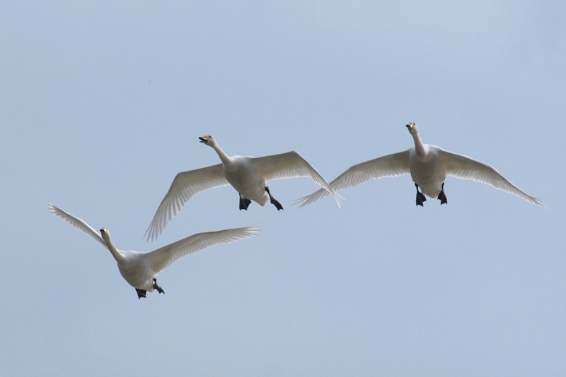 コォ、コォという鳴き声は、オオハクチョウ。