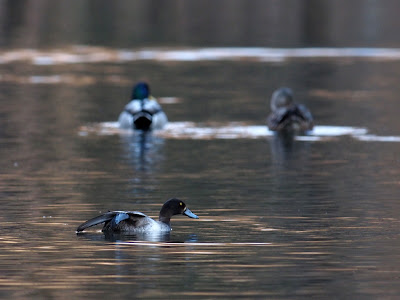 マガモだけだった池に、キンクロ(メス)やホオジロガモ(メス)が戻って来ました。